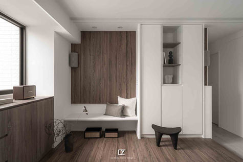 結合大量木紋將素白的空間做潤色